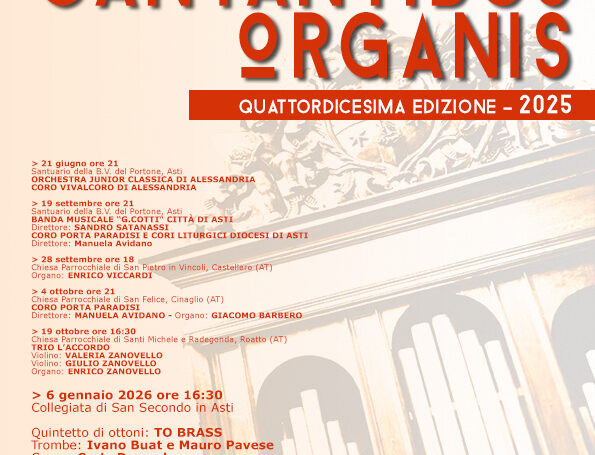 Con il concerto in programma il 6 gennaio alle ore 16:30, nella Insigne Collegiata San Secondo di Asti, si conclude la Rassegna Organistica “Cantantibus Organis” edizione 2025. Dopo gli ultimi appuntamenti di settembre e ottobre in alcuni comuni della Provincia…